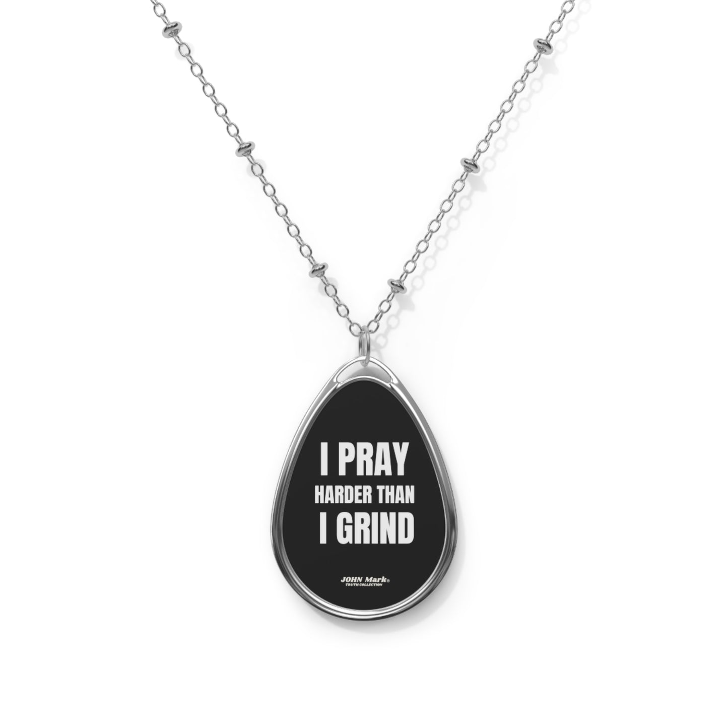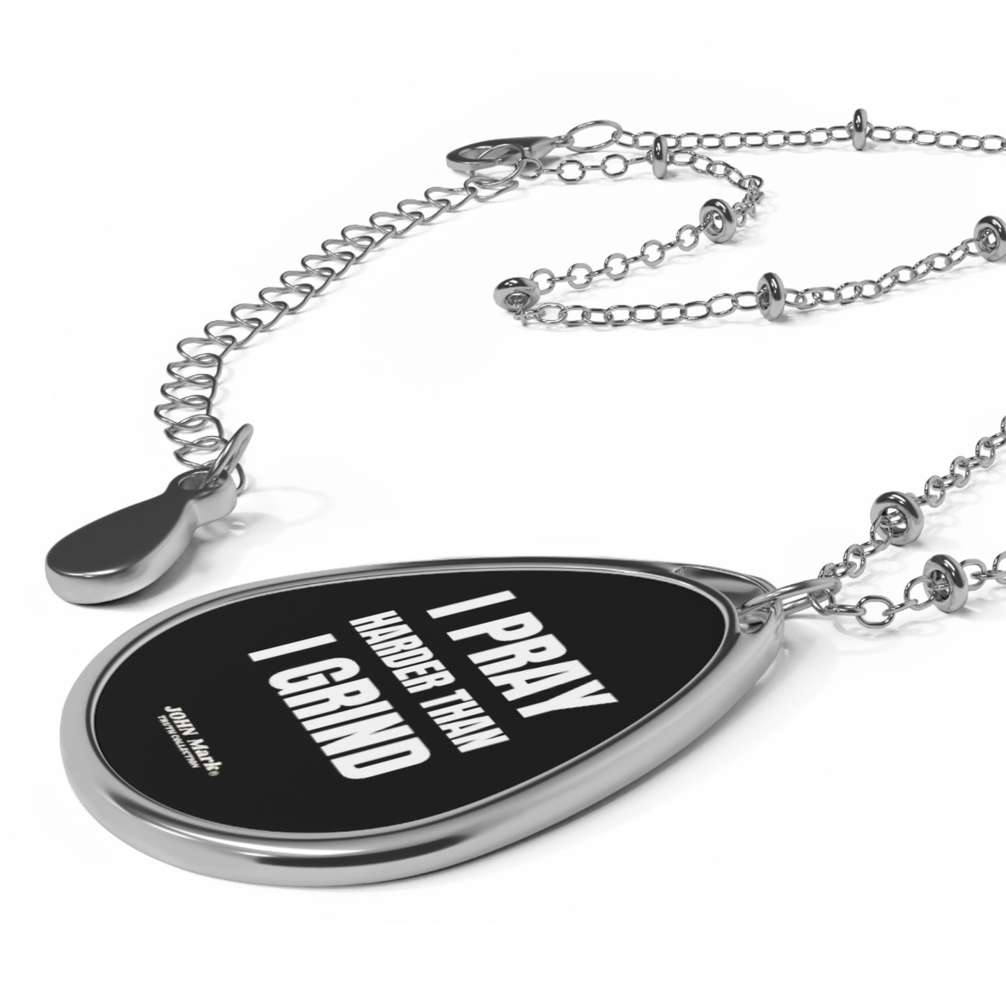 "I PRAY HARDER THAN I GRIND" Oval Necklace